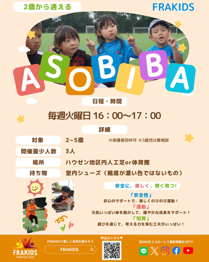 当教室では、2歳∼5歳のお子様を対象に、安全にのびのびと遊べる場を提供します!