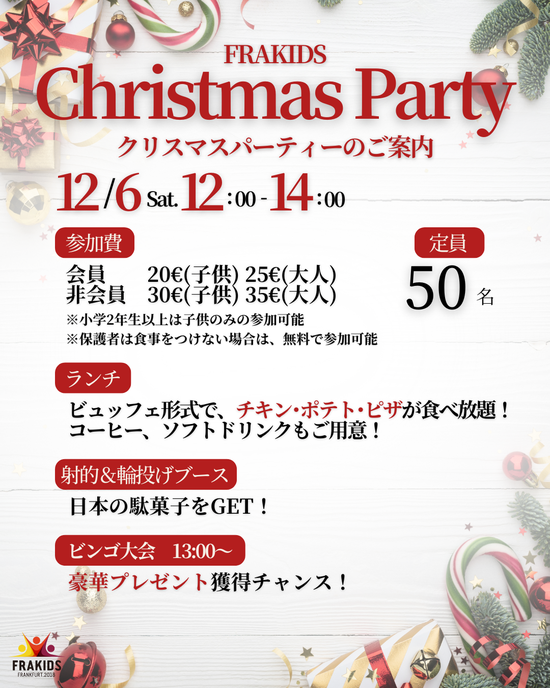 ・クラブの事情などによりスケジュールが変更またはイベントが中止になる場合がございます。その場合はTeamHub、公式LINE、FRAKIDS HPのイベントページにてご連絡させていただきます。