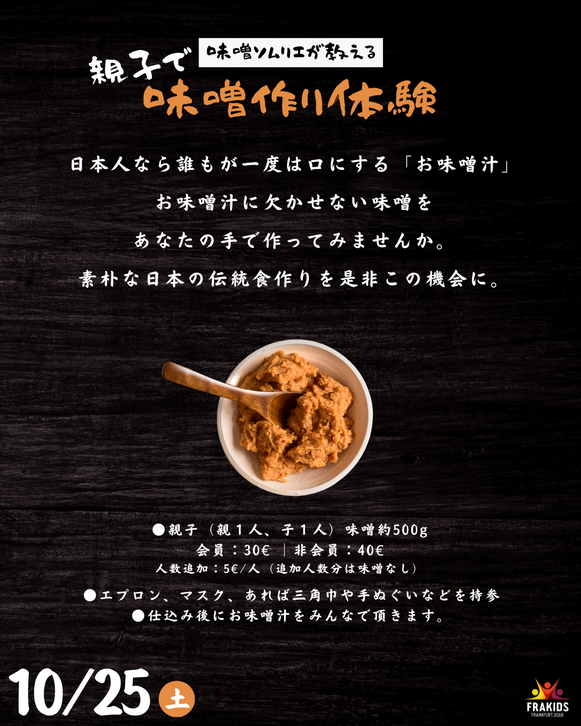 ・親子での味噌づくり体験(1組で1つ味噌をお持ち帰りいただけます)